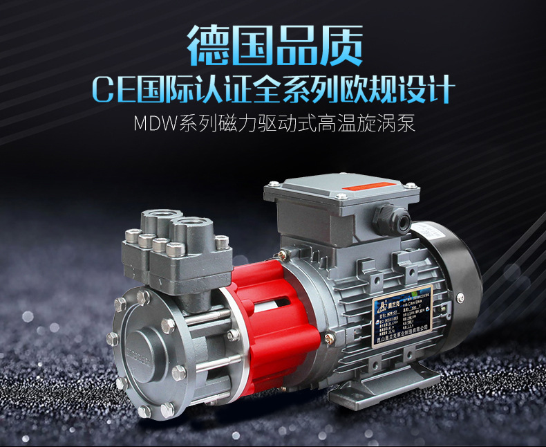 公司產(chǎn)品包括耐高低溫?zé)o機械密封磁力驅(qū)動泵,小型高壓葉片泵,高揚程,小流量旋渦泵和大流量,中低揚程離心泵等,產(chǎn)品具有耐高低溫,體積小,噪音小,振動低,外觀精致,性能穩(wěn)定等特點,并取得高新技術(shù)企業(yè),歐盟CE認證,ISO9001:2015(CQC)質(zhì)量管理體系認證,并自有30余項技術(shù)認證,產(chǎn)品耐溫范圍從低-80度至高+350度,循環(huán)介質(zhì)包括水,導(dǎo)熱油,乙二醇,酒精,碳氫溶液,硅油,齒輪油,液壓油,航空煤油,冰河冷媒等液體.廣泛用于配套模具,輥輪,鍋爐,滅菌,試驗,反應(yīng)釜,激光焊接等冷熱交換控溫設(shè)備,涉及塑料,橡膠,醫(yī)藥,汽車,食品,石油,化工等行業(yè)領(lǐng)域。
