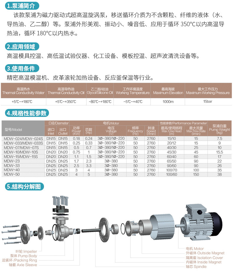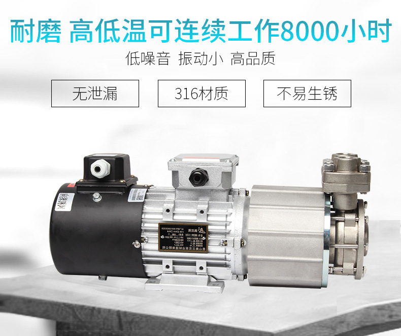 公司產(chǎn)品包括耐高低溫?zé)o機械密封磁力驅(qū)動泵,小型高壓葉片泵,高揚程,小流量旋渦泵和大流量,中低揚程離心泵等,產(chǎn)品具有耐高低溫,體積小,噪音小,振動低,外觀精致,性能穩(wěn)定等特點,并取得高新技術(shù)企業(yè),歐盟CE認證,ISO9001:2015(CQC)質(zhì)量管理體系認證,并自有30余項技術(shù)認證,產(chǎn)品耐溫范圍從低-80度至高+350度,循環(huán)介質(zhì)包括水,導(dǎo)熱油,乙二醇,酒精,碳氫溶液,硅油,齒輪油,液壓油,航空煤油,冰河冷媒等液體.廣泛用于配套模具,輥輪,鍋爐,滅菌,試驗,反應(yīng)釜,激光焊接等冷熱交換控溫設(shè)備,涉及塑料,橡膠,醫(yī)藥,汽車,食品,石油,化工等行業(yè)領(lǐng)域。